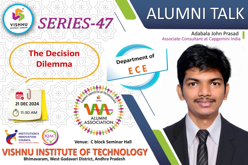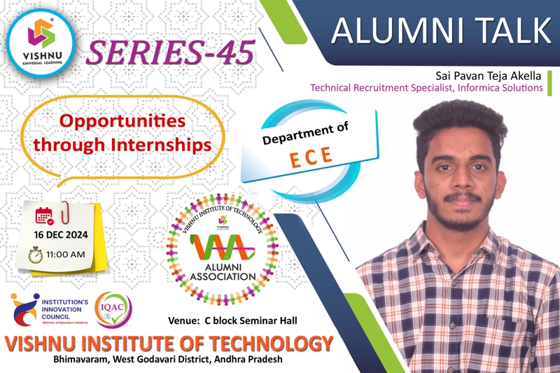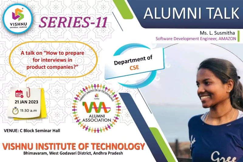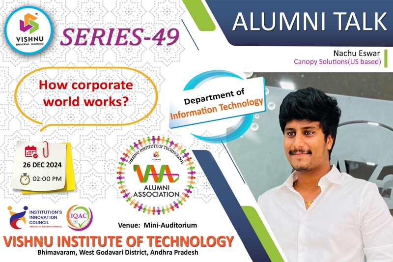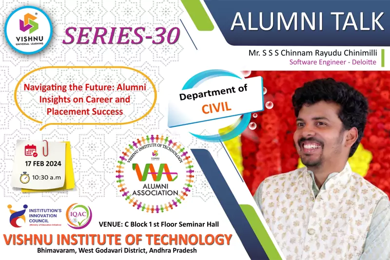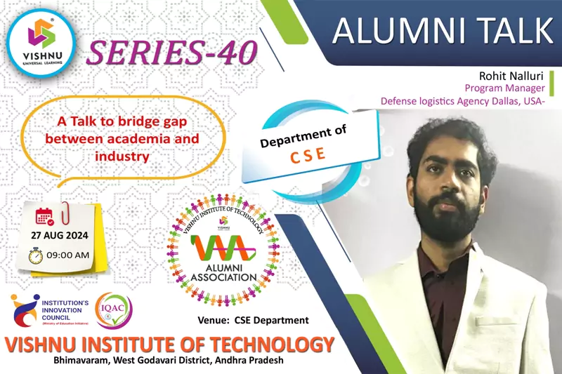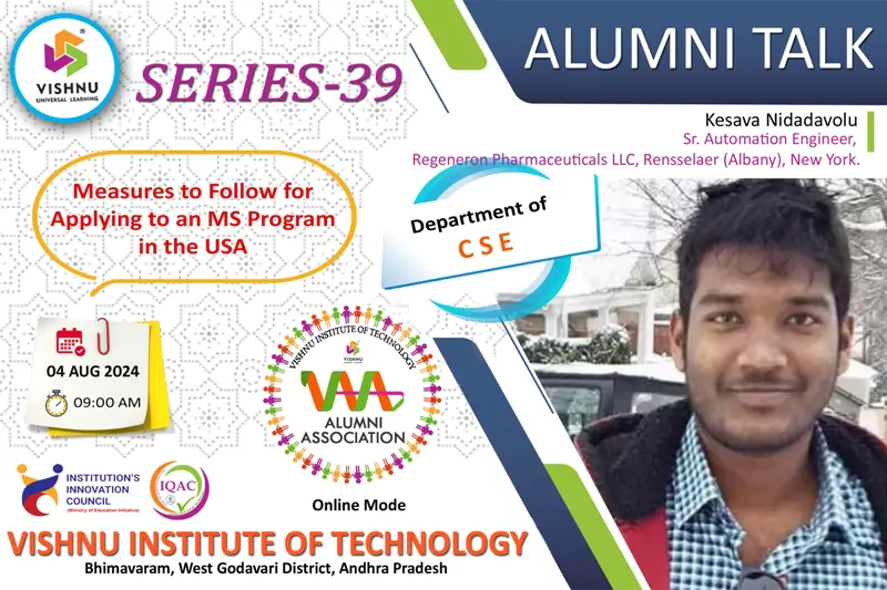 We're proud of our graduates and what they are achieving around the world. Their personal stories are inspiring, make us reflect, and highlight the remarkable things that can be achieved with an education from VISHNU. The focus of the Office of Alumni Relations is to bring alumni's together to connect, give back, socialize, and celebrate the spirit of VISHNU Institutions.
