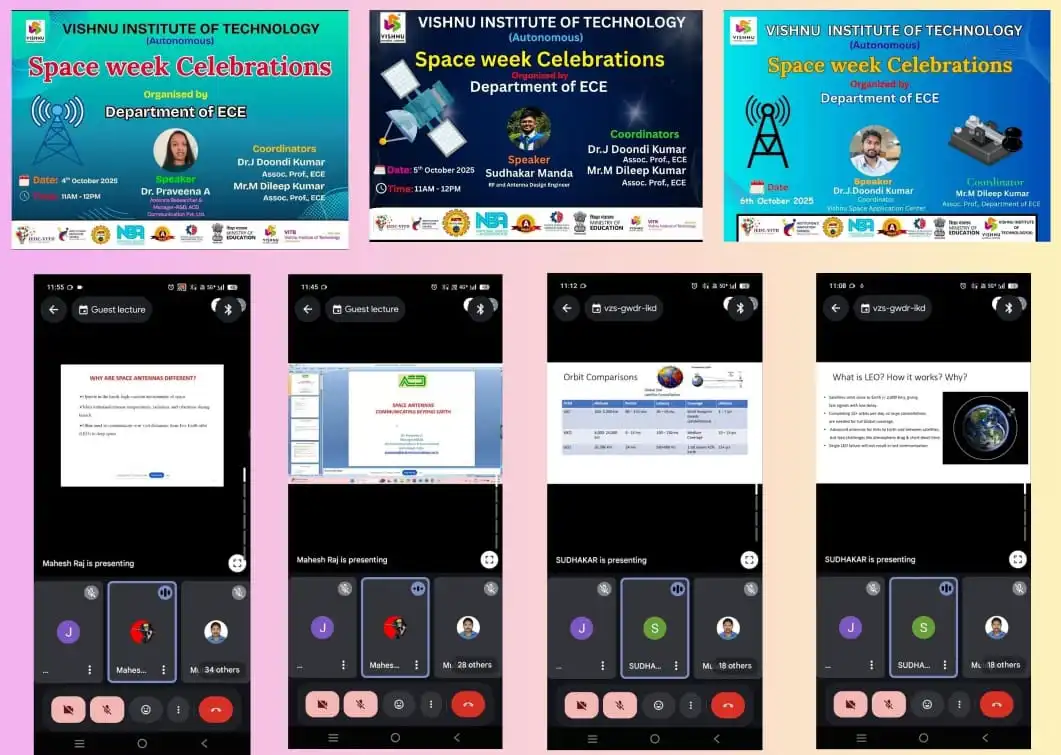 ![]() | On 13th September 2025, ECE department, Vishnu Institute of Technology (A) conducted “Researchers Day ECE” as an annual showcase of the Research and Development contributed by students. The undergraduate students and faculty presented their research outcomes to their peers, faculty and external experts. A total of 15 student teams participated in Project expo and 32 teams participated in poster presentation. The event was successful with overall attendance of 170 students and 40 faculty members. Dr. Krishna Chaitanya A, Assistant Professor, NIT-Andhra Pradesh chief guest of the event shared his thoughts on how such events can help young researchers come together to work on innovative technologies. He also delivered a guest lecture on Wireless Communications: 5G and Beyond. | ||||||||||||