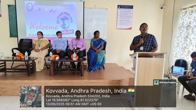 ![]() | The Department of Electrical & Electronics Engineering, Vishnu Institute of Technology, Bhimavaram, successfully organized Researcher’s Day EEE on 7 January 2025. The event was inaugurated by the Principal, Vice Principal, Dean R&D, HoD-EEE, coordinators, and the Chief Guest Dr. T Ramesh from NIT Andhra Pradesh. Highlights included 13 idea presentations, a project expo with 14 projects, and a guest lecture on patent filing by Dr. R Khasim. With active participation from 80 students, prizes were awarded to the best ideas and projects during the valedictory, showcasing strong research and innovation culture. | ||||||||||||