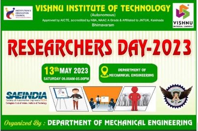 | The Researchers Day event organized by the Department of Mechanical Engineering was successfully held on 13/05/2023. The event aimed to promote a research culture, foster collaboration, and provide a platform for knowledge exchange and skill development among researchers, faculty, and students.Renowned expert Prof. Santosh Kumar G. in the field of mechanical engineering, delivered an inspiring keynote address. He provided valuable insights into the latest advancements, challenges, and opportunities in the field, inspiring attendees to strive for excellence in their research endeavors. | |||||||||||||